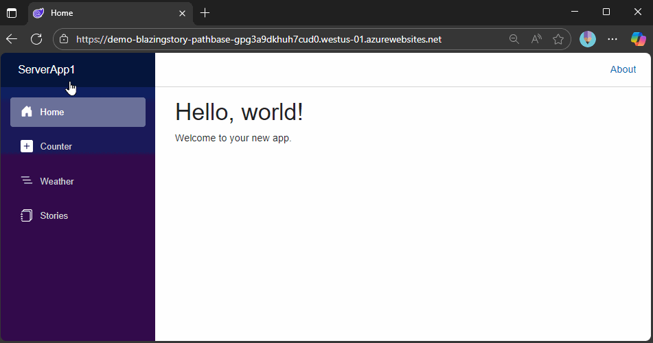 The result will be a single Blazing Story Server App hosting multiple Blazor Server Apps, each under different path bases. The following GIF shows an example of such an application: